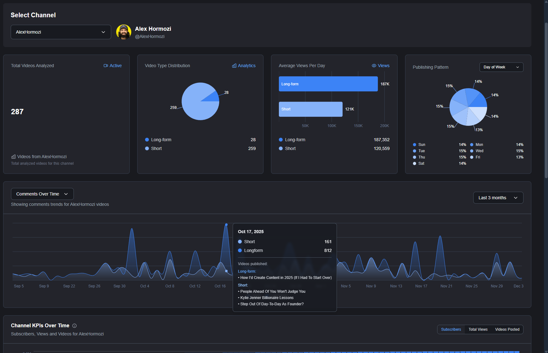 Monitor your channel and other channels in your niche with instant metrics, viral alerts, and comprehensive posting insights to stay ahead of the competition.